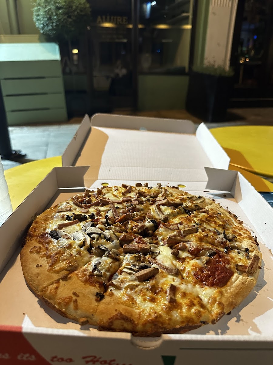 The menu features a range from the Vegetarian Perfection to the hearty Meat Feast. For those seeking something unique, the Lebanese-style Sfeha is a must-try. Each pizza boasts a thin crust and generous toppings that satisfy both casual diners and discerning foodies alike.